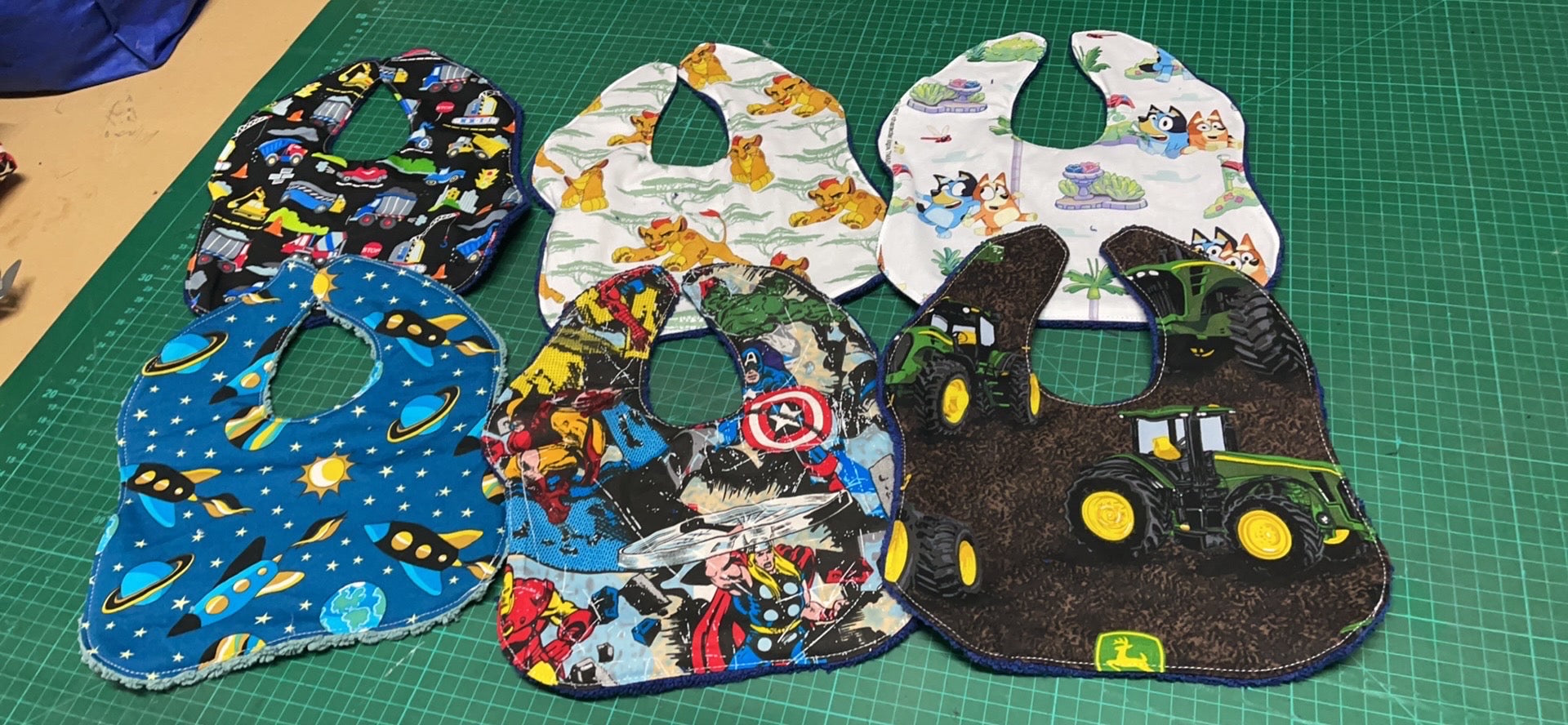 Bibs with toweling back came in any fabric in photos